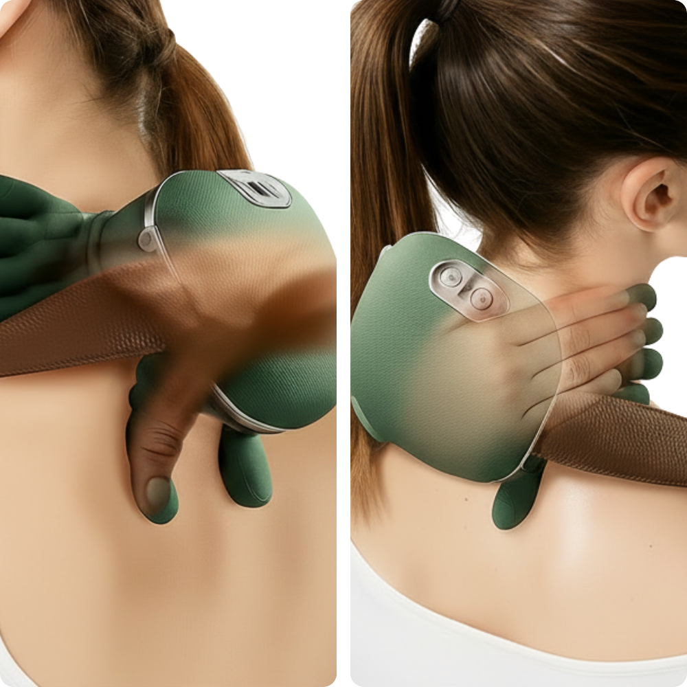 Der Knethand Massager knetet wie echte Hände, löst tief sitzende Verspannungen und bringt Wärme für sofortige Entspannung. Einfach umschnallen oder in der Hand nutzen.